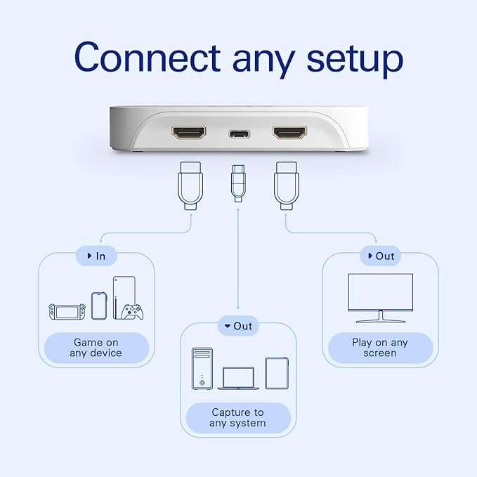 - Compact and powerful: Easily set up your gaming experience with premium Elgato Capture hardware, no larger than a smartphone, connecting your console, gaming screen, and computer or iPad effortlessly