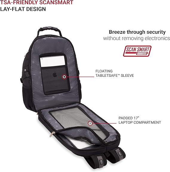 - Tech Backpack: Pack all your essentials in the 1900 ScanSmart 17-inch laptop backpack specifically designed to speed you through airport security by allowing laptop-in-case scanning