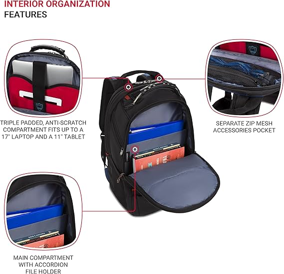 - triple protect padded compartment protects up to a 17” laptop on all sides using three-layers of high-density foam